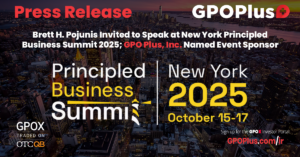 Las Vegas, Nevada (October 9, 2025) – GPO Plus, Inc. (OTCQB: GPOX), an AI-powered Distributor revolutionizing distribution to gas stations and convenience stores with its innovative technology-driven Direct Store Delivery (DSD) model, is excited to announce that GPOX is a featured sponsor and CEO Brett H. Pojunis will be a speaker at the upcoming New York Principled Business Summit.